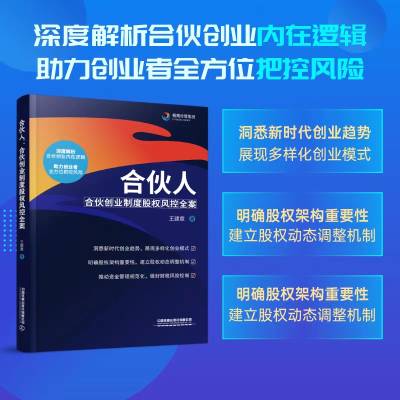 其中,精鹰传媒集团董事长王建章还将自己的创业经历也加入到案例当中,把自己过往所战胜困难的经验以及感悟总结出来,希望能够帮助到正在创业或想要创业的读者创造属于自己与合伙人的成功,可以说是理论性与实操性兼具,非常适合创业者和企业管理者阅读。